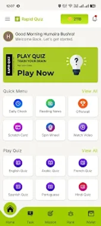 Rapid Quiz is een gratis educatieve app voor Android die gebruikers de mogelijkheid biedt om op een leuke manier kennis te testen en beloningen te verdienen. Met dagelijkse taken zoals het inchecken, het kijken naar video's en het draaien aan het gelukswiel, kunnen gebruikers eenvoudig virtuele munten vergaren. De app combineert entertainment met leren door uitdagende quizzen aan te bieden die gebruikers kunnen spelen om hun kennis en vaardigheden te verbeteren.